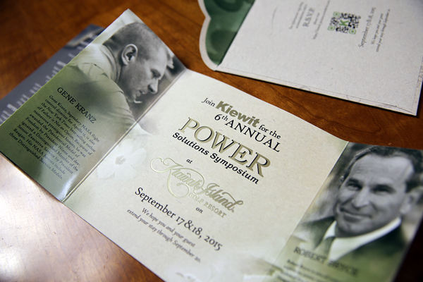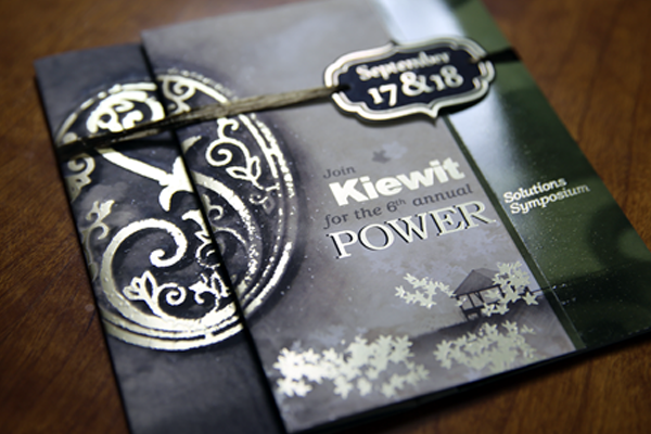 Invitation for a client symposium. The Power Solutions Symposium is an educational forum of industry leaders, designed to offer an open, interactive discussion with experts in the industry as they provide an outlook on the power market and strategic market initiatives. It was sent to a select group of clients and partners to give them an opportunity to network and learn, while staying at the Sanctuary, at Kiawah Island Golf Resort, SC. I developed the concept, drew up layout and mockups, and finally saw it through the print process.