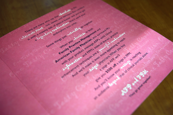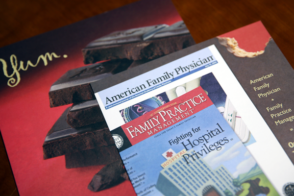 Ad space advertisement for the American Academy of Family Physicians in Leawood, Kan. These were direct mail pieces.