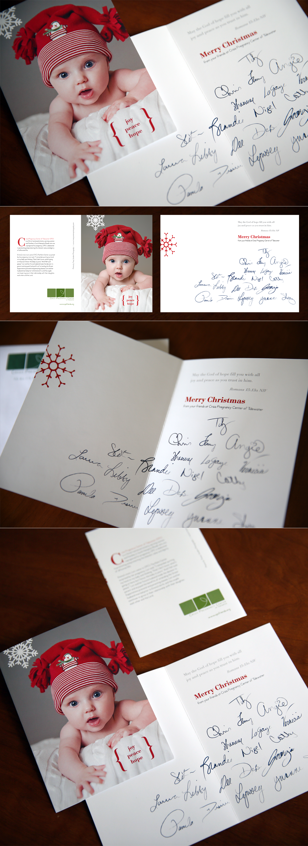 Holiday card requested by communications team of Crisis Pregnancy Center of Tidewater. Crisis Pregnancy Center of Tidewater 1021 Eden Way North, Suite 116 Chesapeake, VA 23320
