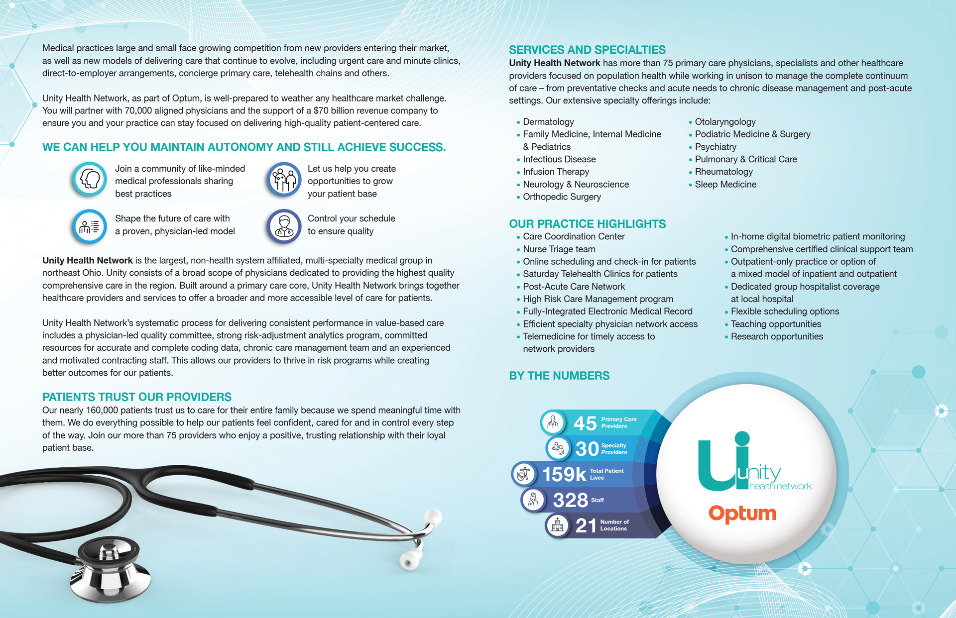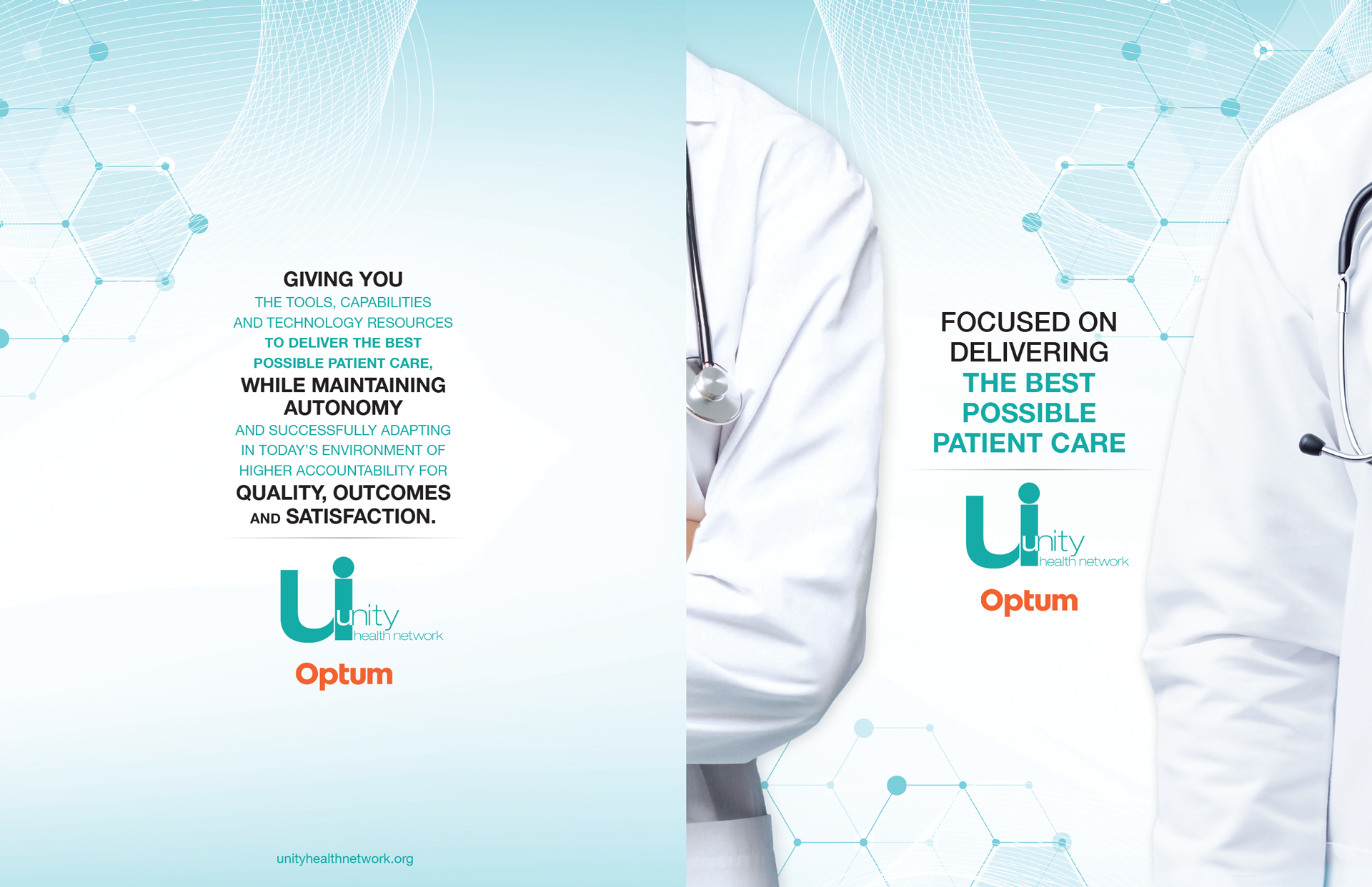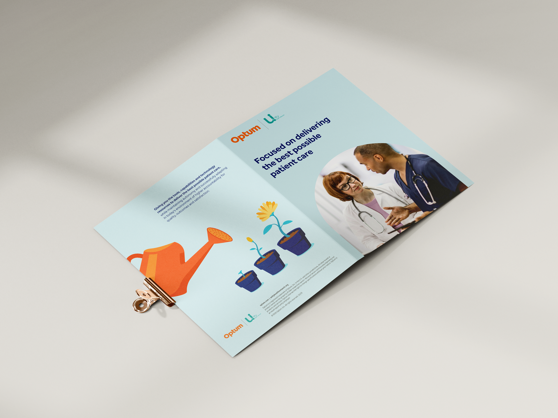 Optum reached out with a request to modernize and fully rebrand their existing Unity Recruiting bifold. The original file—provided as a legacy PDF—needed to be completely rebuilt to align with Optum’s contemporary brand system, typography, color palette, and visual hierarchy.