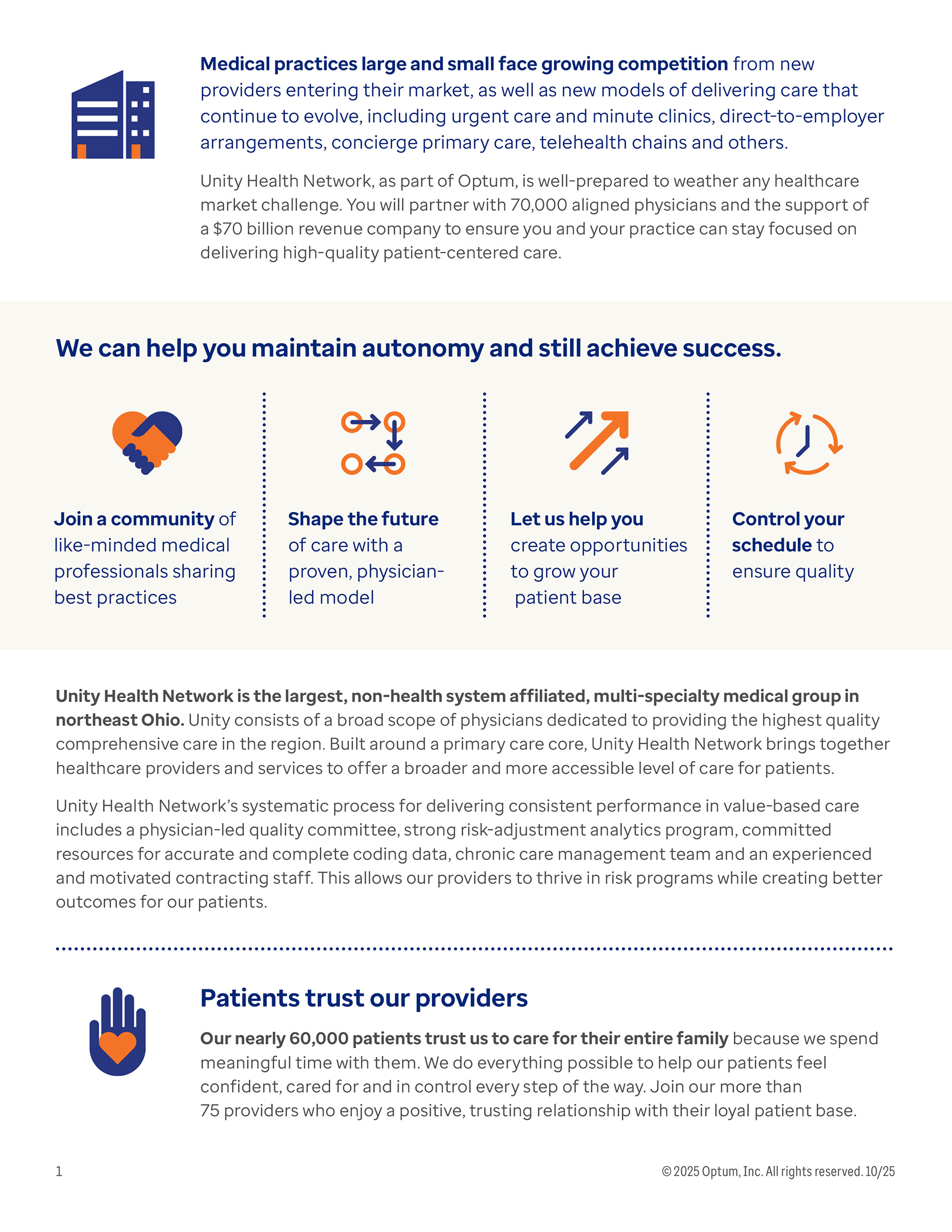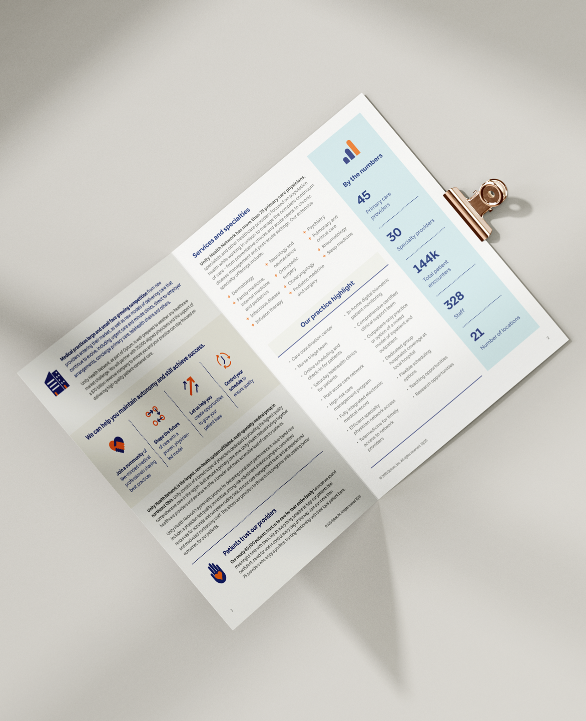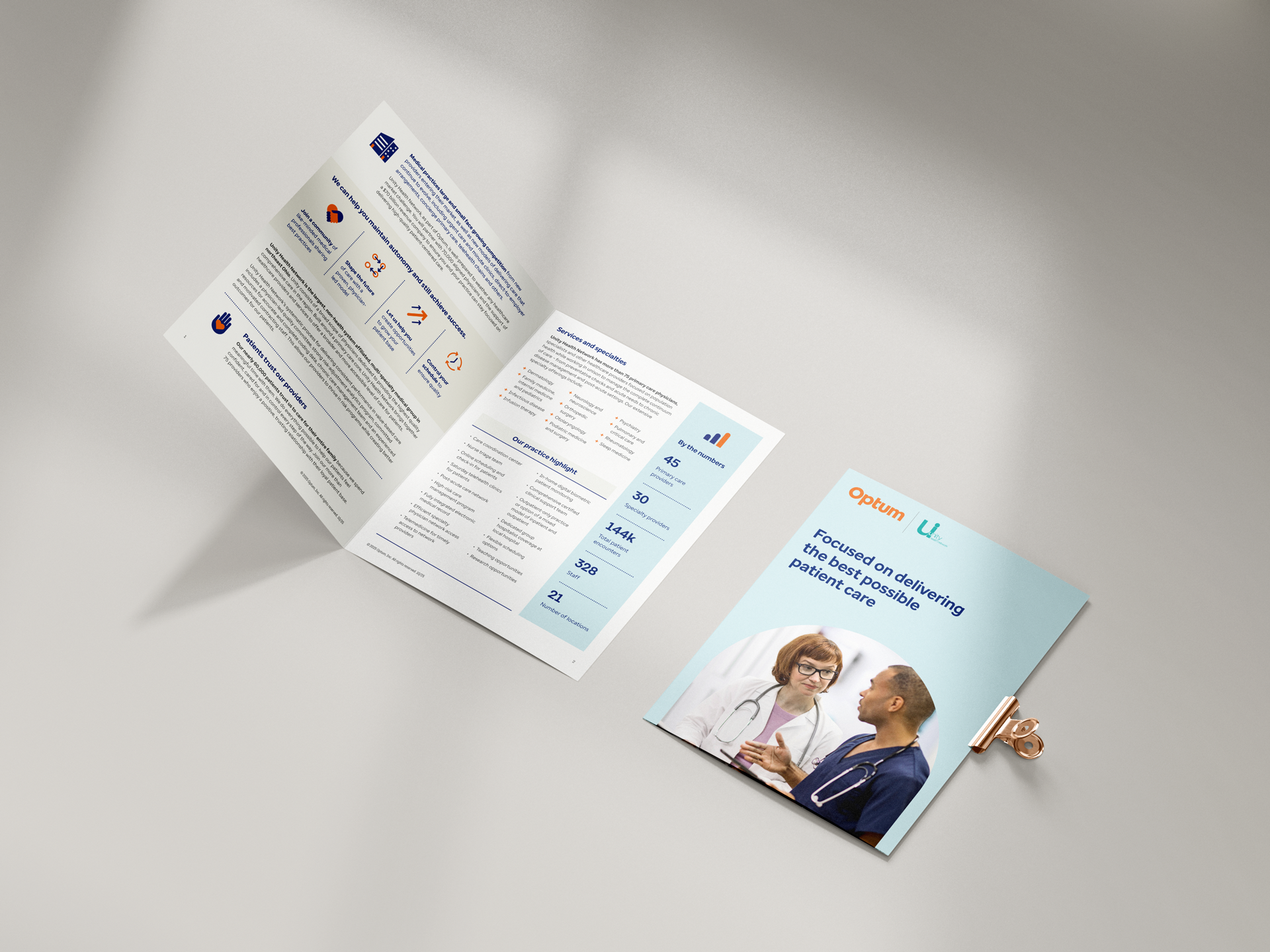 Optum reached out with a request to modernize and fully rebrand their existing Unity Recruiting bifold. The original file—provided as a legacy PDF—needed to be completely rebuilt to align with Optum’s contemporary brand system, typography, color palette, and visual hierarchy.